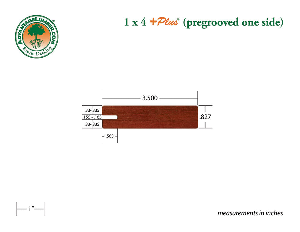 1 x 4 +Plus® Brazilian Redwood Wood One Sided Pre-Grooved Decking