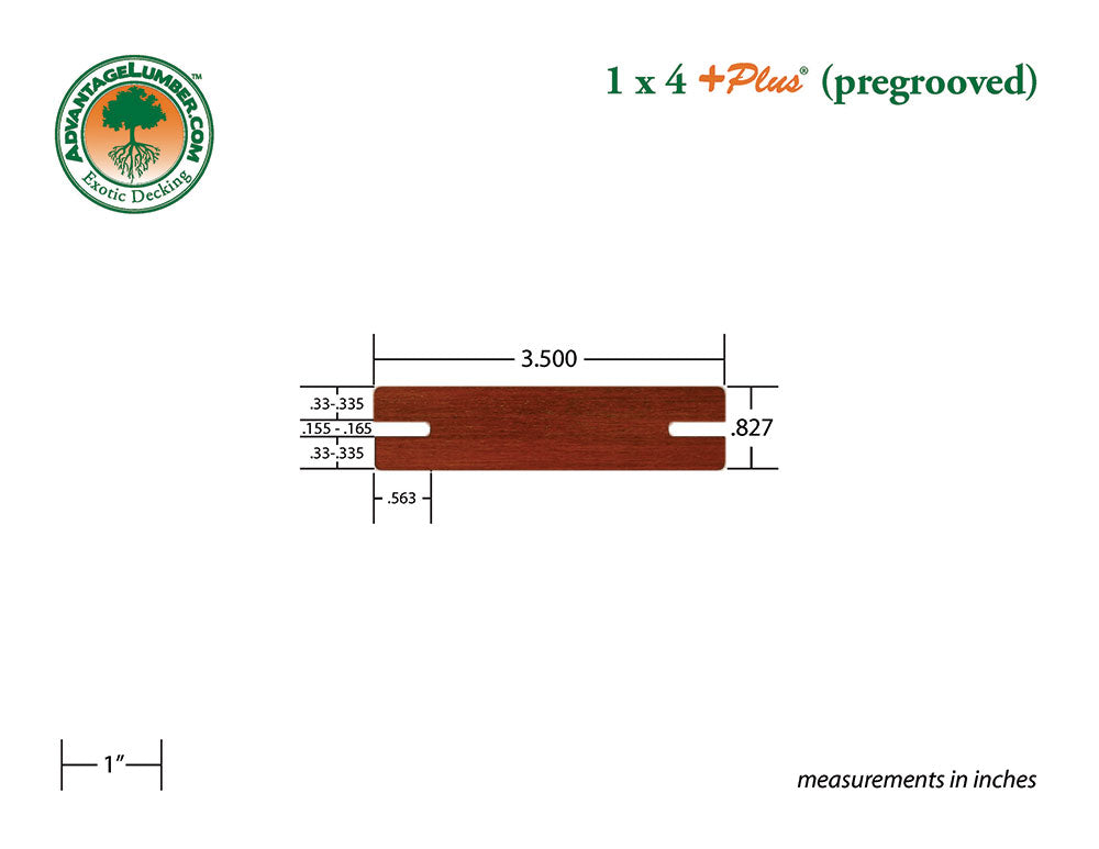 1 x 4 +Plus® Brazilian Redwood (Massaranduba) Wood Pre-Grooved Decking (21mm x 4)