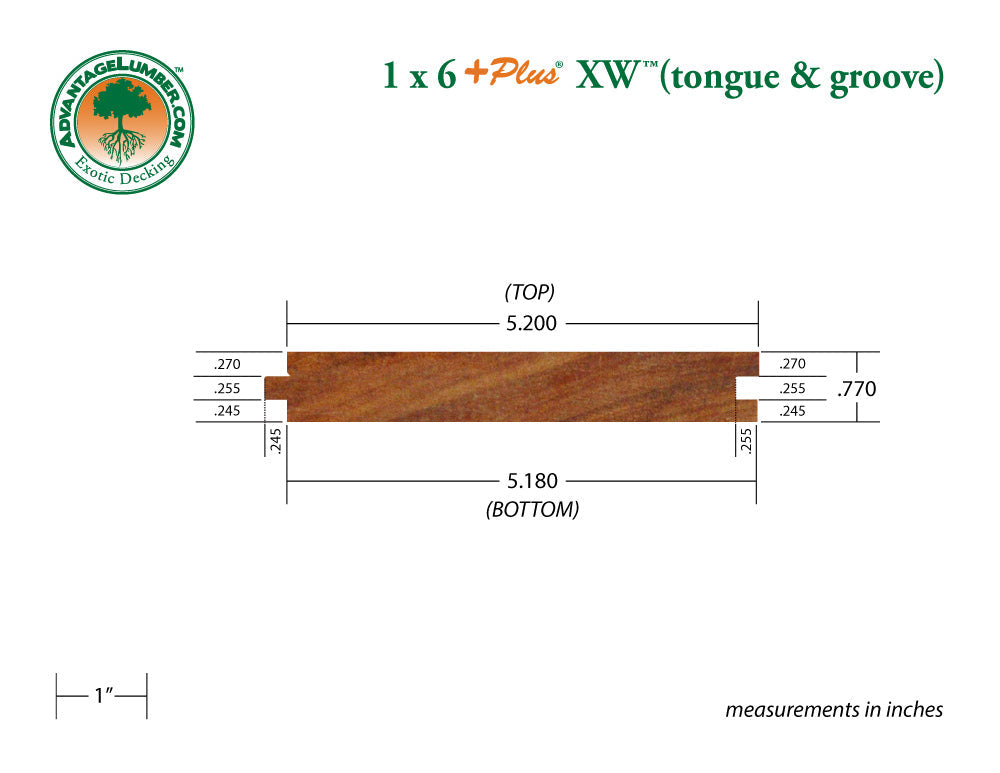 1x6 +PLUS® XW™ Cumaru Wood Tongue and Groove Decking (21mm x 145mm)