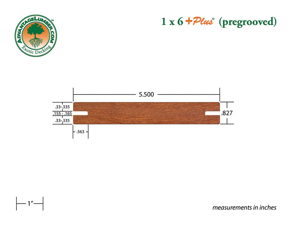 Pre-grooved Cumaru Decking – 1x6 Plus®