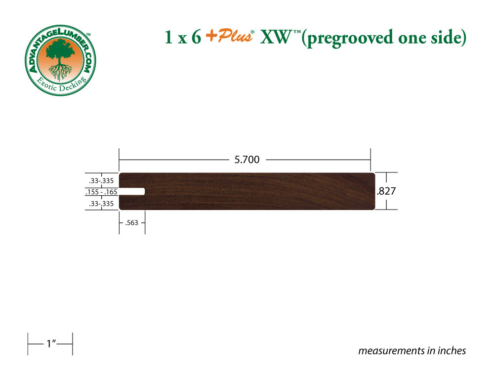 1x6 +PLUS® XW™ Ipe Wood One-Sided Pre-Grooved Decking (21mm x 145mm)