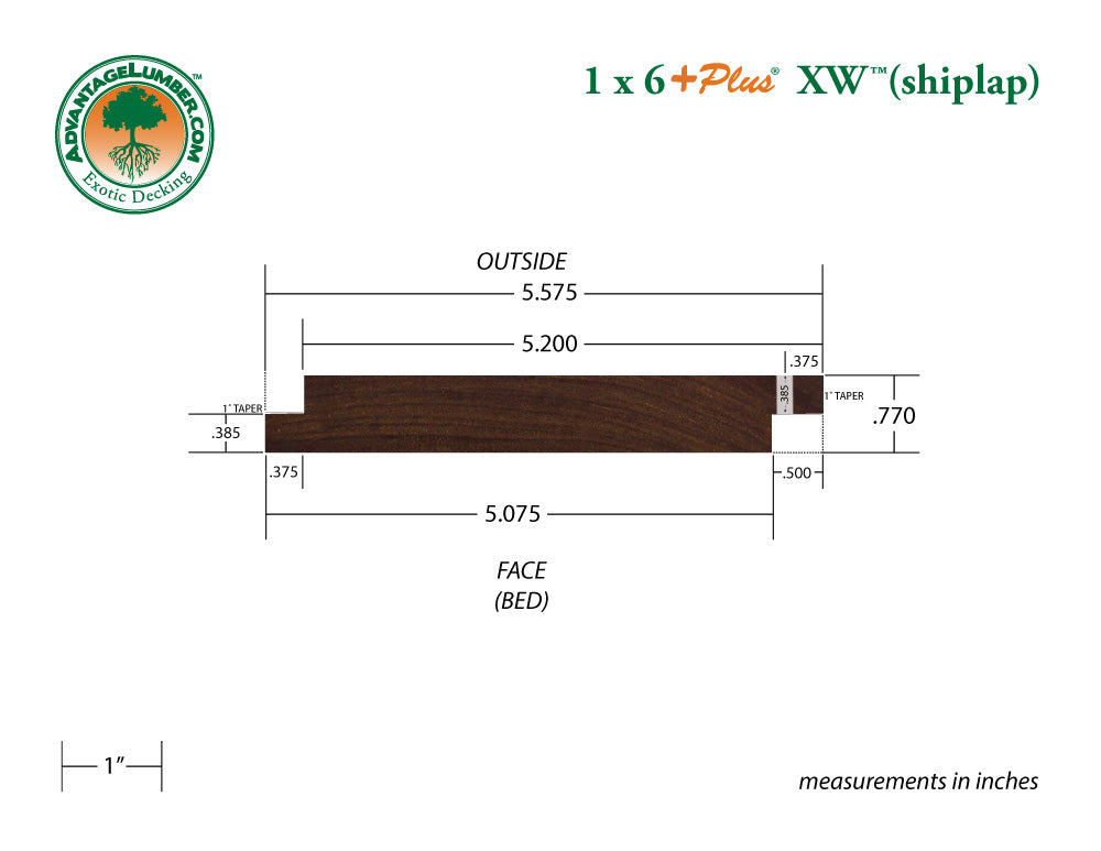 1x6 +PLUS® XW™ Ipe Wood Shiplap Siding (21mm x 145mm)