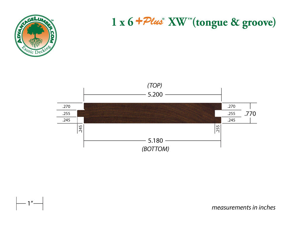 1x6 +PLUS® XW™ Ipe Wood Tongue and Groove Decking (21mm x 145mm)