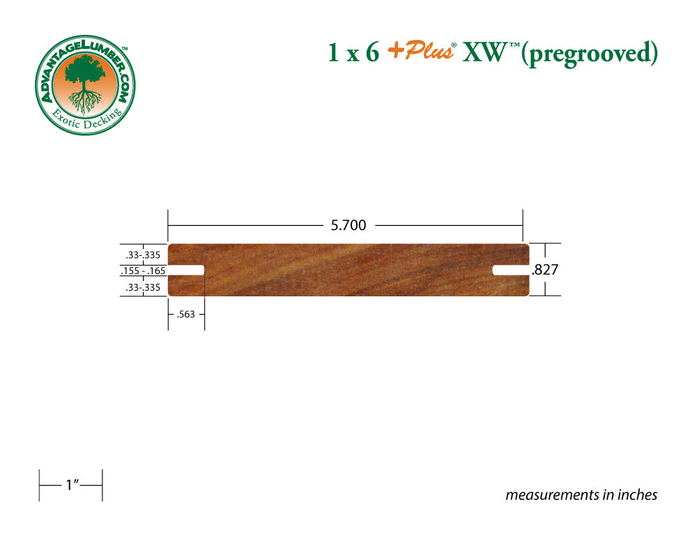 1x6 +PLUS® XW™ Cumaru Wood Pre-Grooved Decking (21mm x 145mm)
