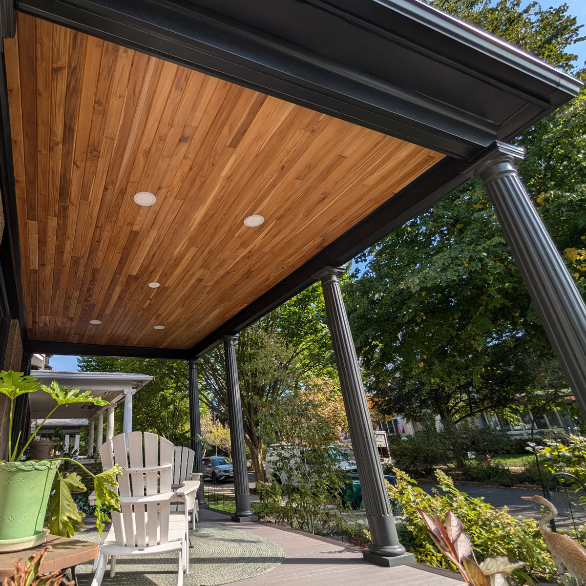 Versatile v-groove profile can be used for ceiling and siding applications.