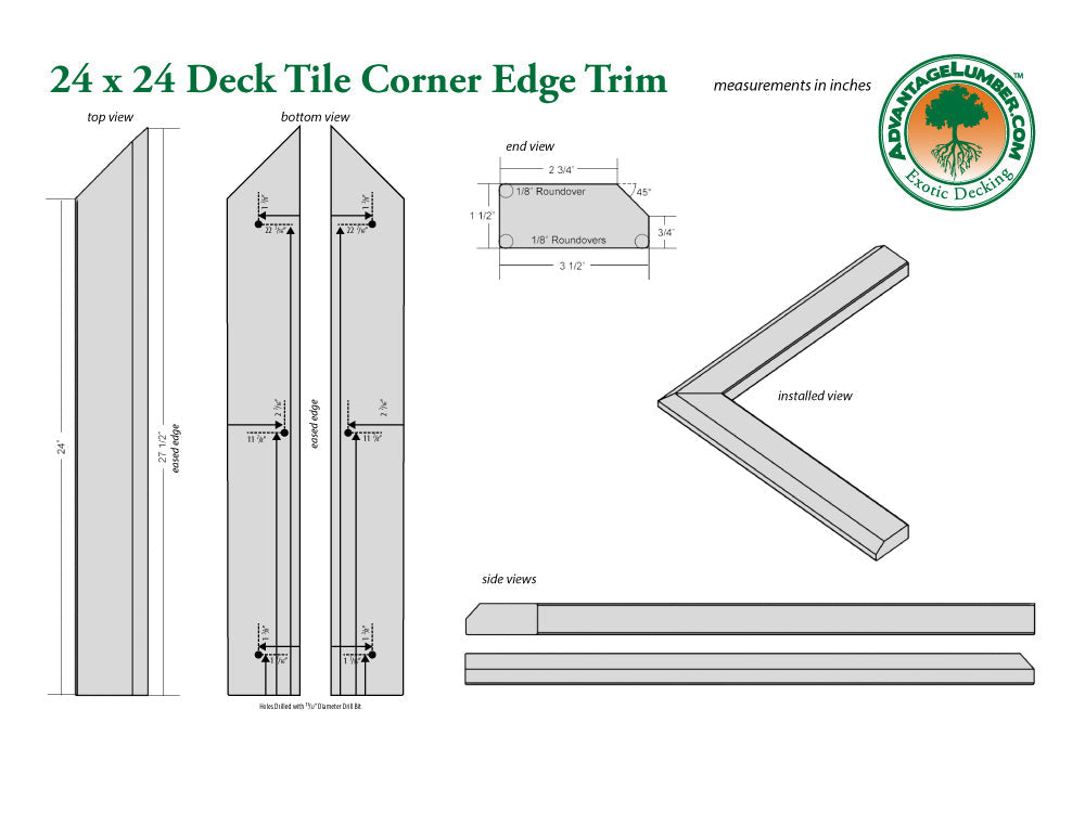 24 x 24 Advantage Deck Tile® Edge Trim - Outside Corner Set