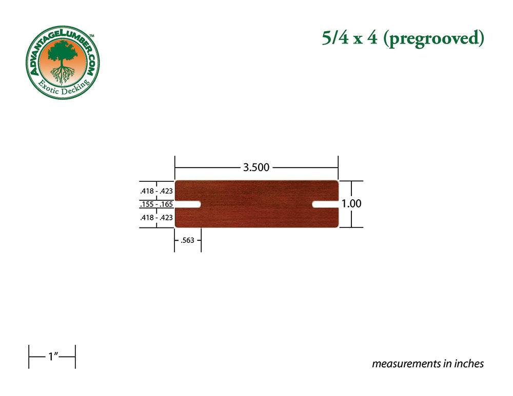 5/4 x 4 Brazilian Redwood (Massaranduba) Wood Pre-Grooved Decking