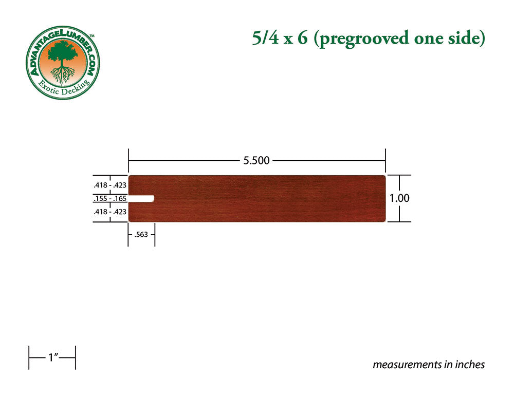 5/4 x 6 Brazilian Redwood (Massaranduba) Wood One Sided Pre-Grooved Decking