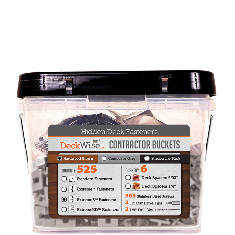 The DeckWise® 525 Contractor Bucket comes with all the deck-building hardware you need: