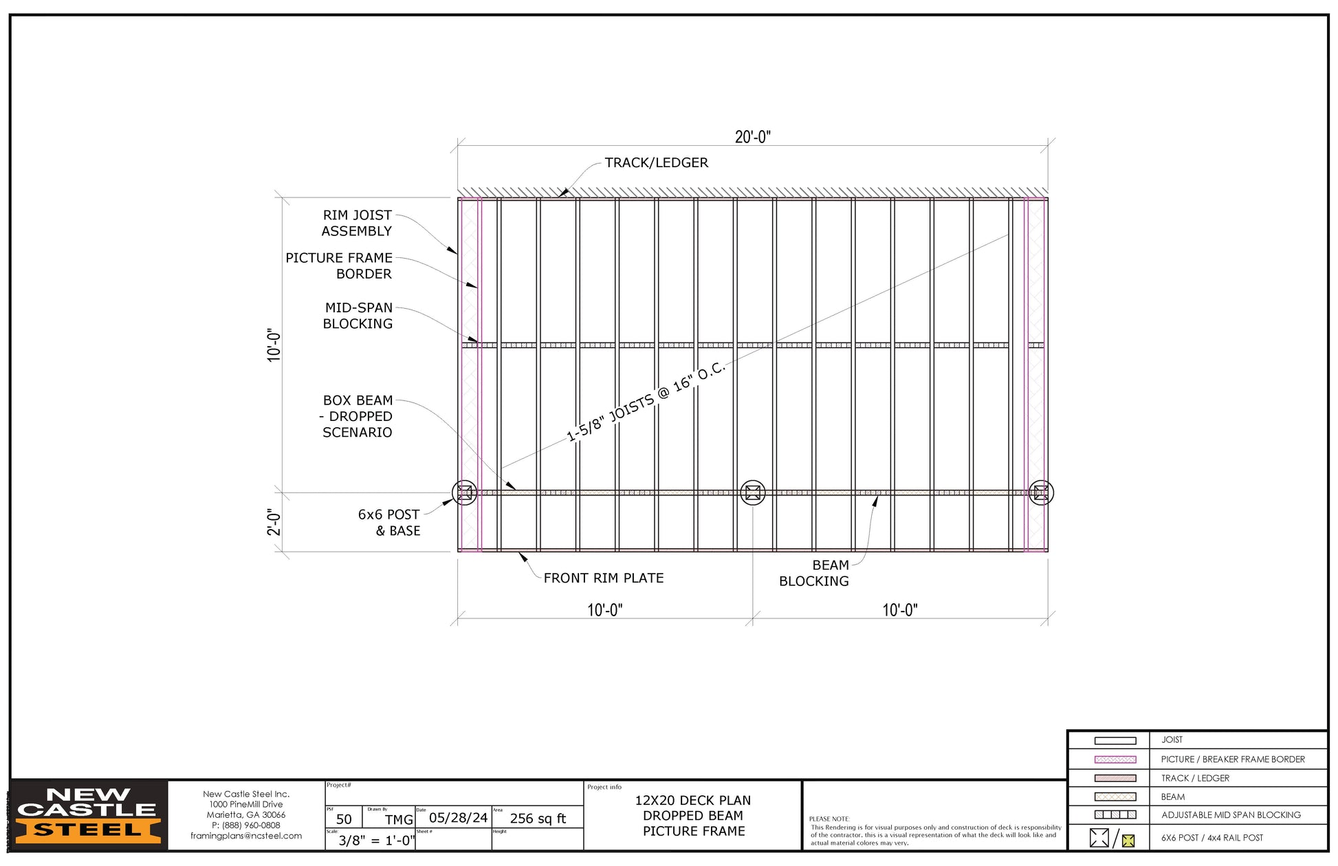 New Castle Steel Deck Framing Kit - 12x20 Deck, Dropped Beam, Picture Frame