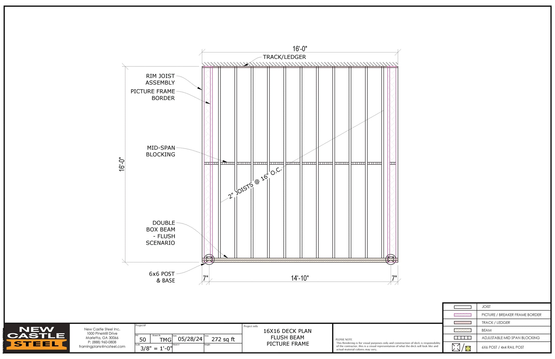 New Castle Steel Deck Framing Kit - 16x16 Deck, Flush Beam, Picture Frame
