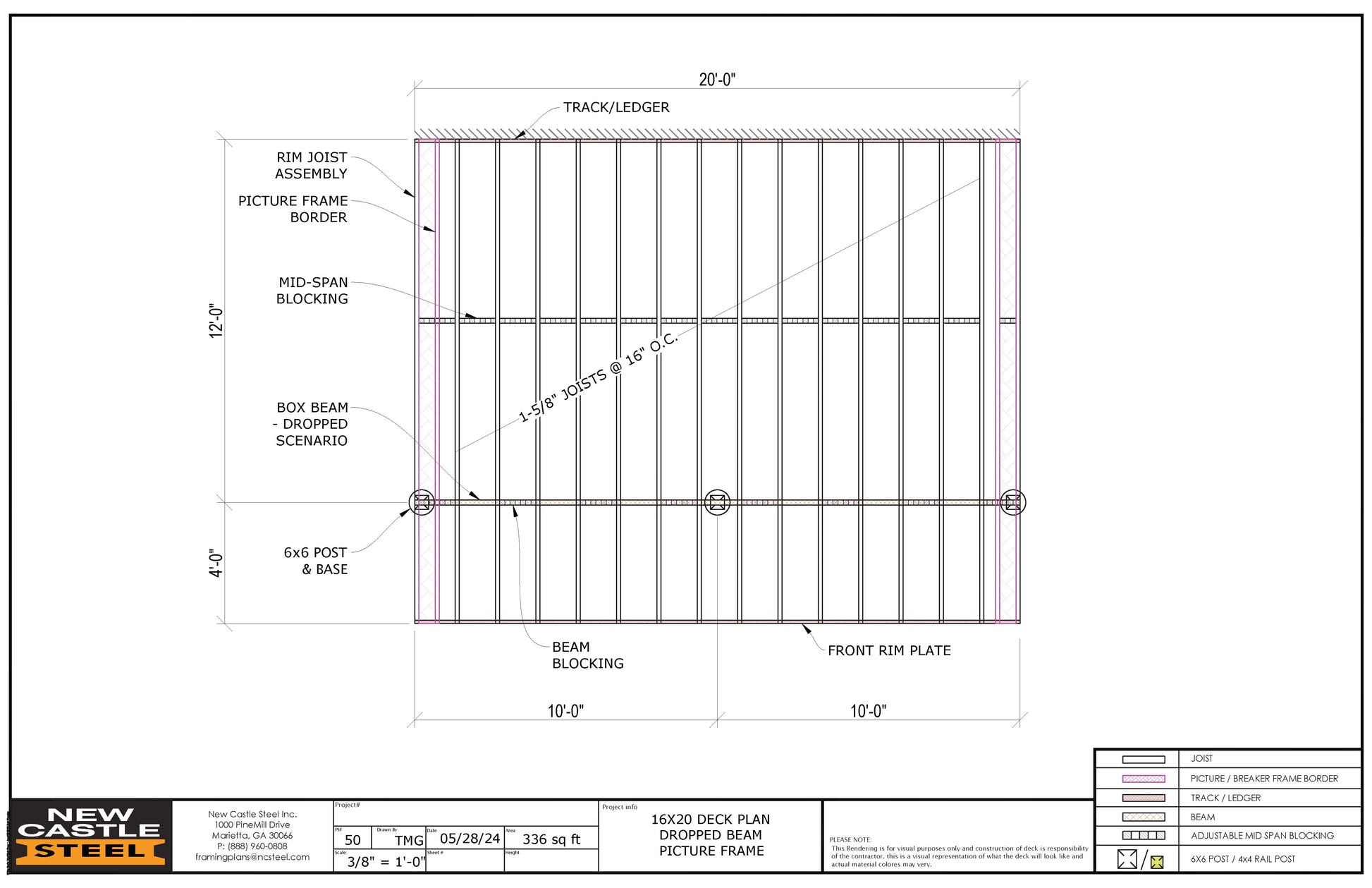 New Castle Steel Deck Framing Kit - 16x20 Deck, Dropped Beam, Picture Frame