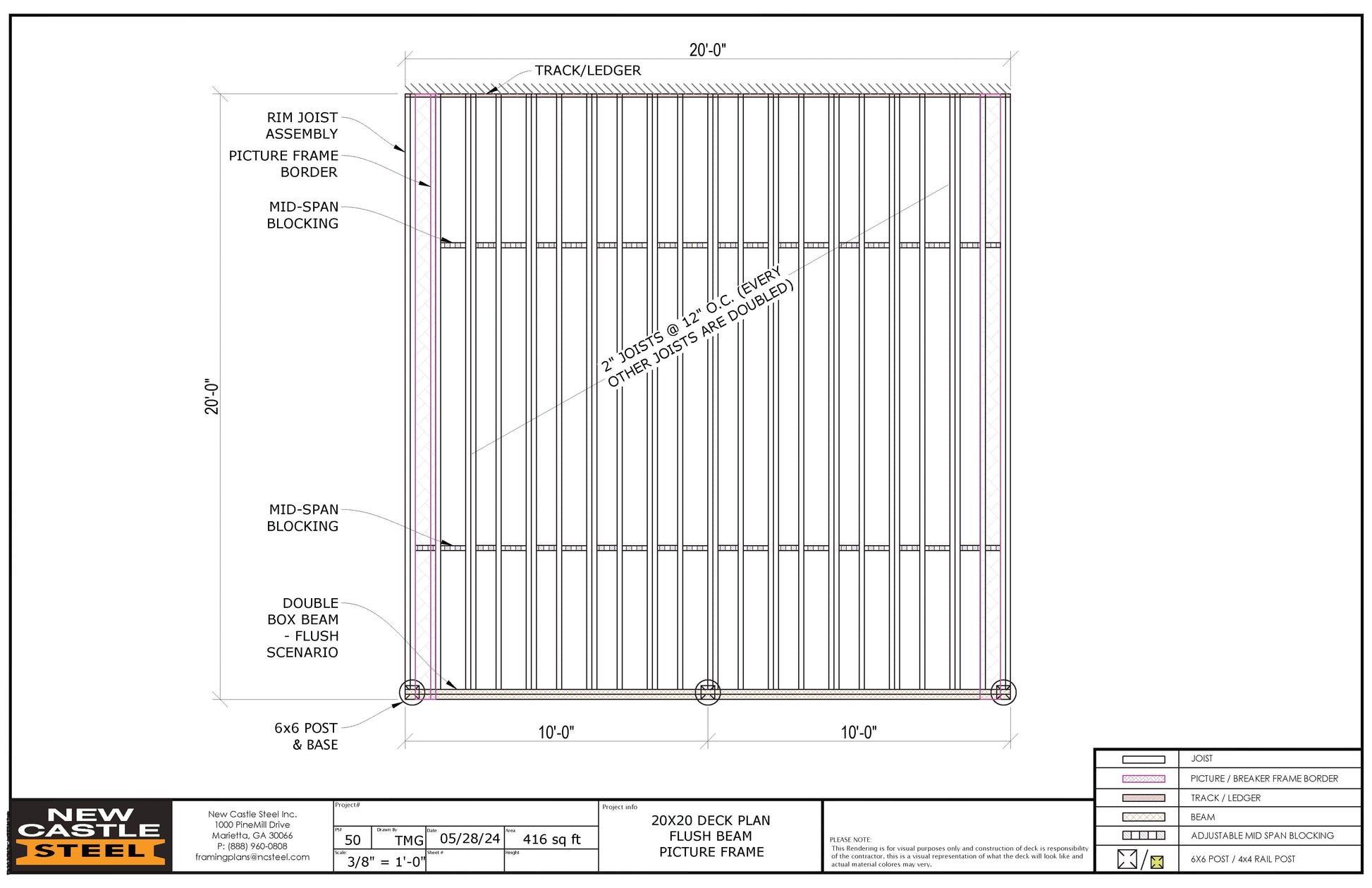 New Castle Steel Deck Framing Kit - 20x20 Deck, Flush Beam, Picture Frame