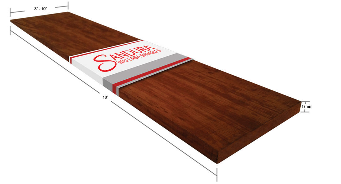 15mm Thick: Sandura® Wallaba Shingles - Taper Sawn Clear, Heartwood, Mostly Quarter Sawn & Rift Sawn Grain, 15mm thick, 18" length, 3.5-9" width (1 bundle)