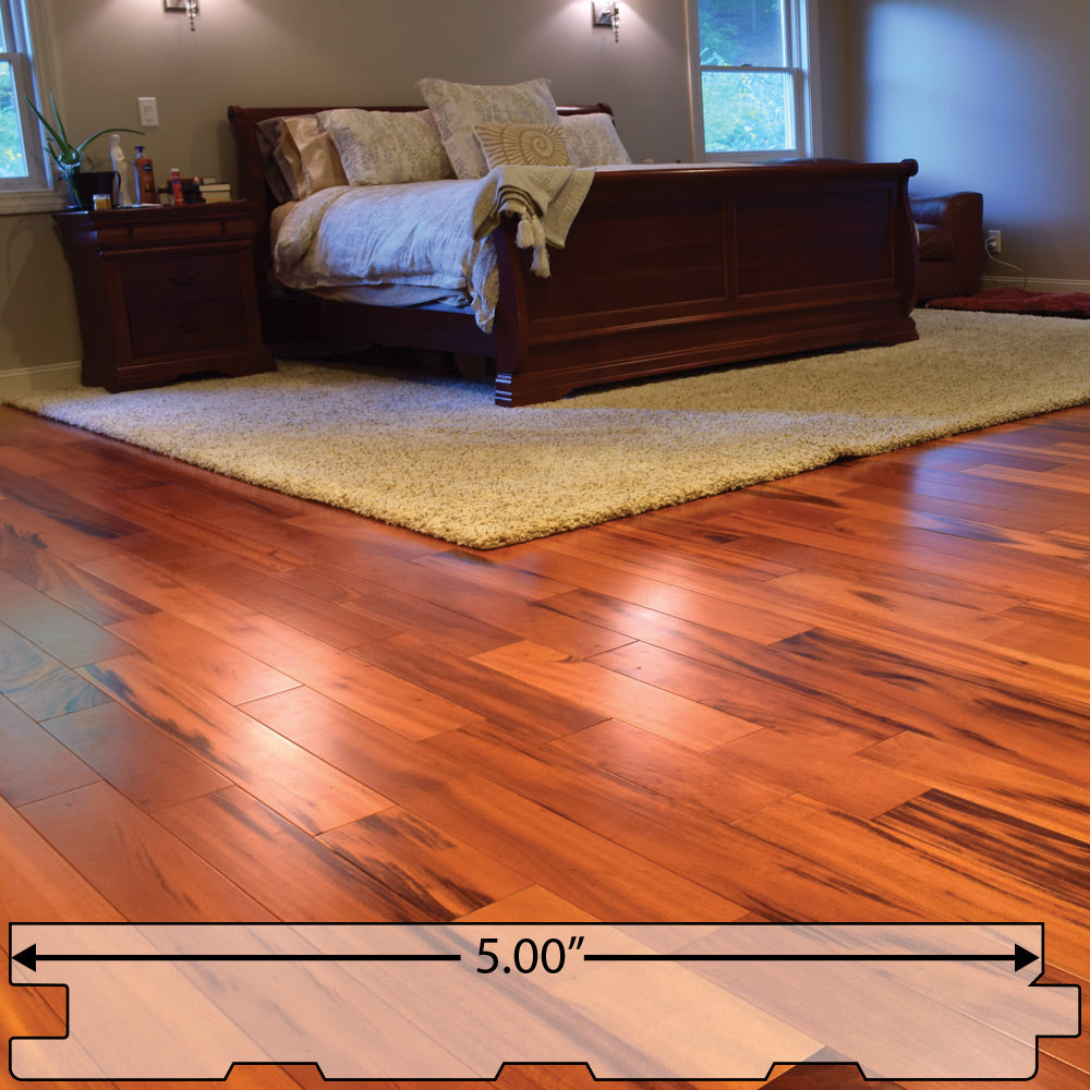 Tigerwood (Goncalo Alves, Muiracatiara, Brazilian Koa) Solid Flooring 5″ Unfinished, $5.48/sqft