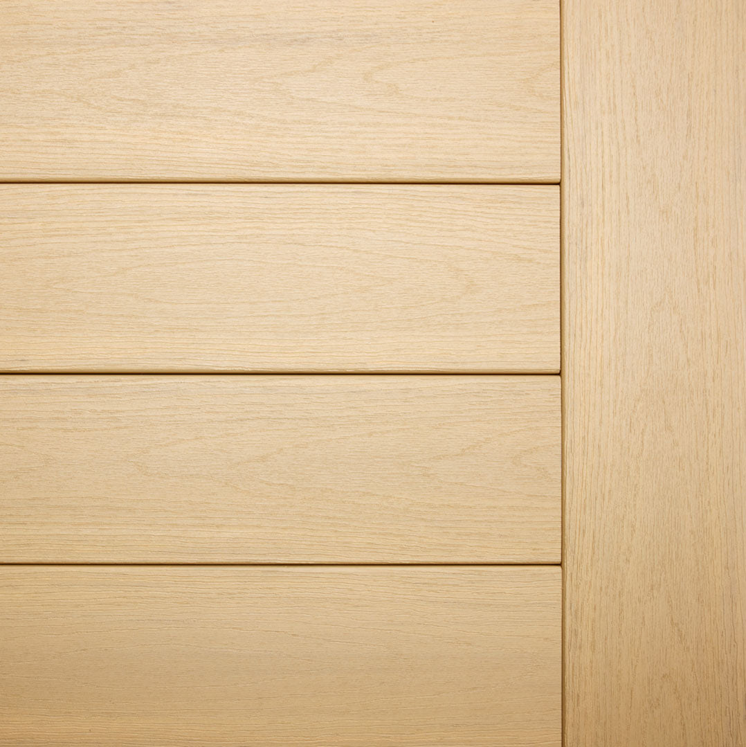 • Artful layering of open and cathedral grain patterns with a low-gloss finish